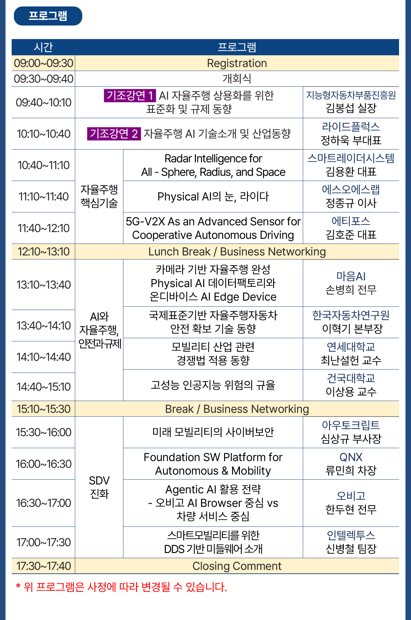 - 참석대상: 자율주행 및 모빌리티 산업 산학연 관계자