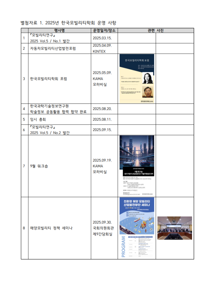 한국모빌리티학회 11월 워크숍 및 이사회 운영