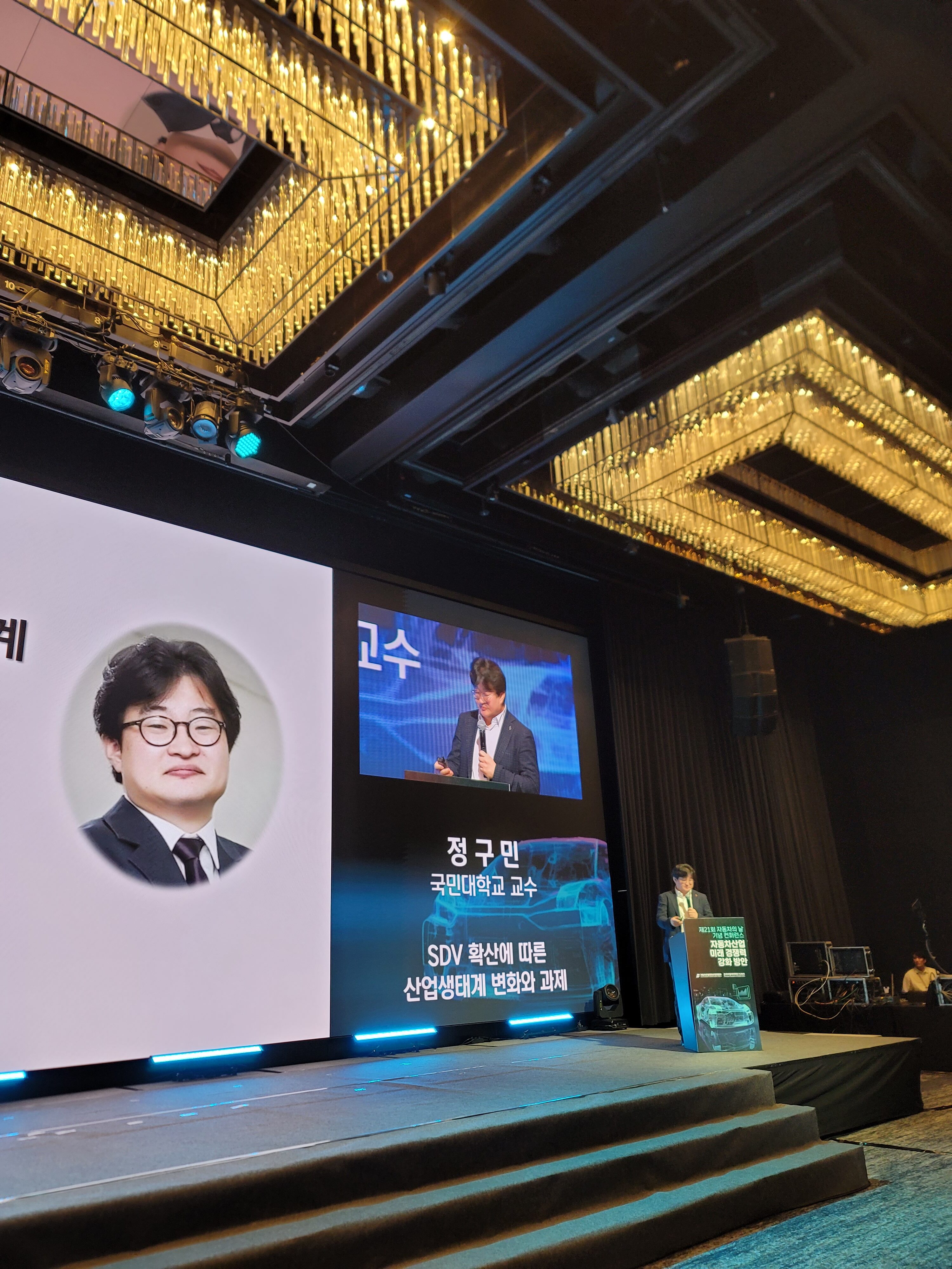 이 날의 주제는 '자동차산업의 미래 경쟁력 강화를 위한 발전 방향 모색'이었고 수석 부회장이신 정구민교수께서 "SDV 확산에 따른 산업생태계 변화와 과제"라는 제목으로 발표를 해주셨고, 이종욱 고문님께서 토론의 좌장을 맡아 주셨습니다.