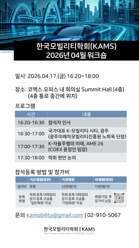 New 한국모빌리티학회 4월 워크숍 개최 안내