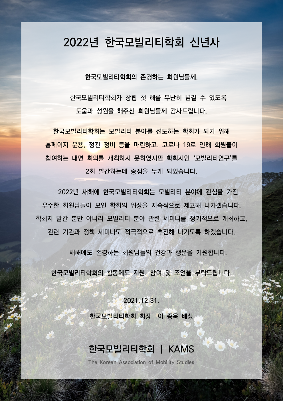 [2022년 신년사] 한국모빌리티학회 이종욱 회장